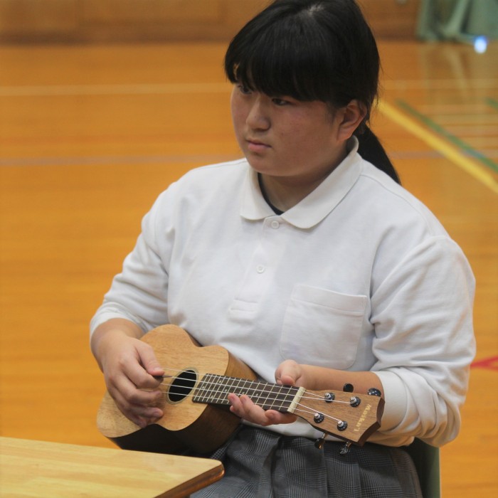 ウクレレを弾くのは初めての生徒ばかりでしたが、丁寧に教えてもらったおかげで最後には全員で「きらきら星」を演奏することができました。
