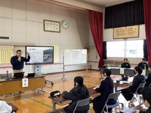 講話の中では、「自分が決めた道を突き進んだ経験が今の生活に生かされていること。」「仕事を経験していく中でマイナス面もあったが、今となってはプラス面に働いていること。」等の話があり、生徒へ伝えたいこととして「多くの人と関わることで自分の視野や可能性が広がる。」「チャレンジ精神をもつ。」などのお話がありました。