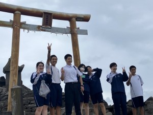 令和7年10月8日(水)東アジア歴史・中国語コースの1年生が、歴史学入門で島内巡検を行いました。今回は、芦辺町にある「旧日本海軍見張所・兵舎跡地」・「少弐資時(しょうにすけとき)の墓、碇石、狼煙台」・「壱岐神社」・「龍蛇(りゅうだ)神社」・「小島神社」を見学しました。旧日本海軍見張所・兵舎跡地では、監視所からの眺めから当時の様子を想像し、兵舎跡地では、浴槽があった場所や水を溜めていたコンクリートの一部などを見学しました。小弐公園(しょうにこうえん)にて、少弐資時の墓や碇石、壱岐神社を見学し、弘安の役に関する理解を深めました。また龍蛇神社では、由来や出雲大社との関係などを学ぶことができました。最後に以前訪れた際には渡れなかった小島神社を訪れて巡検を終えました。