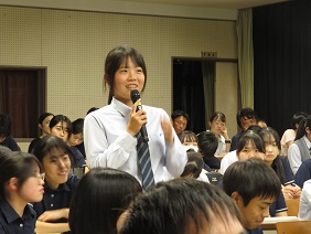10月16日(木)4月から取り組んでいる探究活動の中間発表を行いました。発表班は9班です。1年文理探究科の生徒以外にも2年生の普通科の生徒も参加し、質疑応答が活発に行われました。最後には長崎総合科学大学の先生より助言をいただきました。今回の発表でいただいた意見や助言をもとにまた探究活動を進めて行きます。本発表は3月を予定しています。