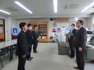 本日、校長室にて本校の代表として全国選抜大会へ出場する