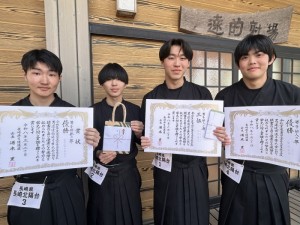 結果は次の通りです。男子団体 優勝(松室・丸尾・山内)男子個人 優勝 柴原 天飛 3位 松室 惺也