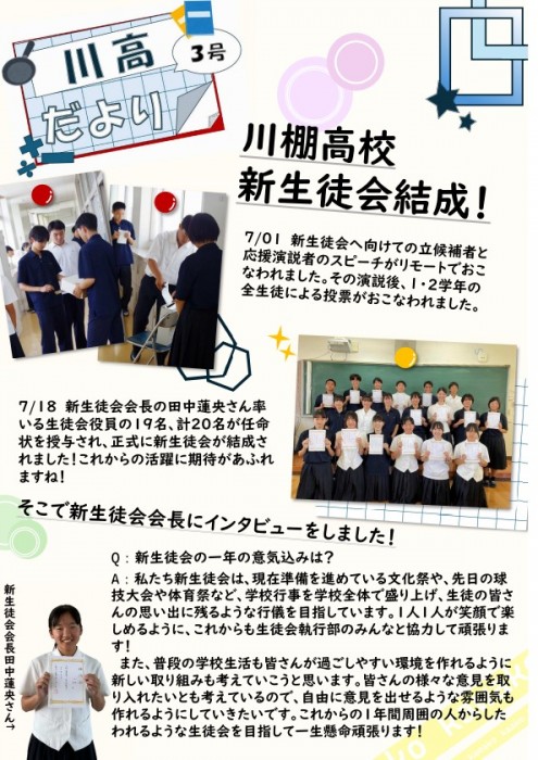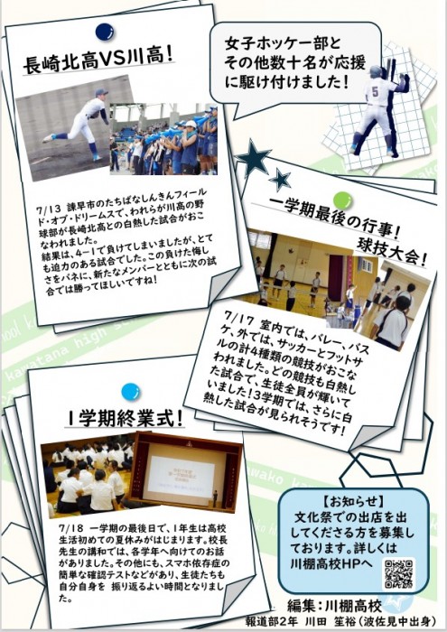今号の製作は 報道部2年 川田 笙裕(波佐見中学校出身)が製作致しました。