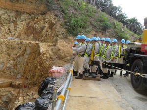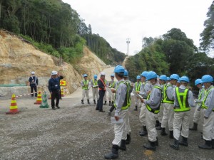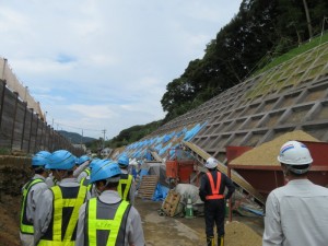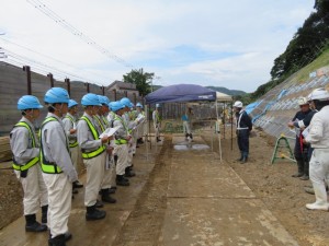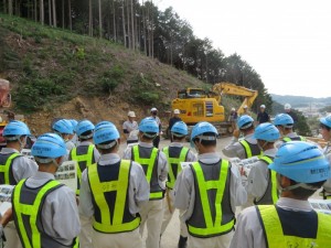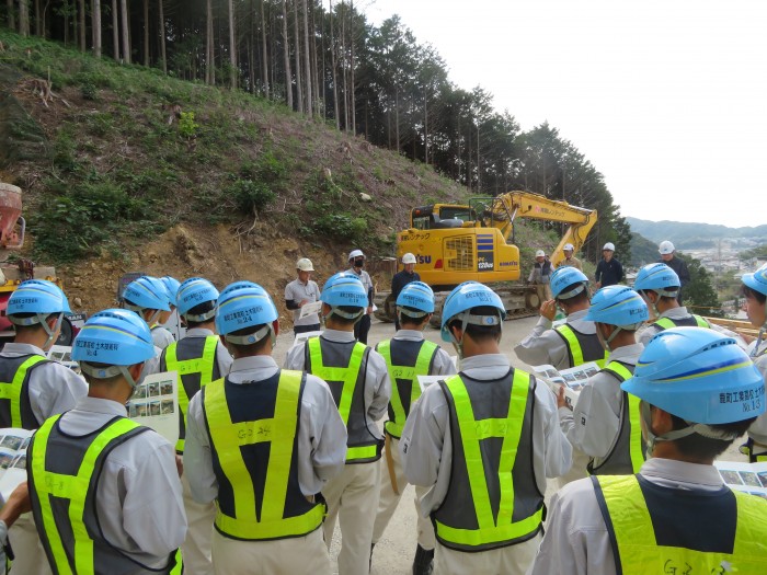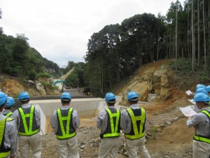 10月16日(木)に土木技術科2年生22名が、現場見学会に参加してきました。午前に主要地方道佐々鹿町江迎線道路改良工事(谷山建設・ダイヤ特定建設企業体)、星鹿地区水産生産基盤整備工事(大坪建設(株))、午後に、一般国道202号道路改良工事((株)ウエノ)、中原川通常砂防工事((株)堀内組)を見学しました。たくさんの工事現場を見ることができ、理解が深まりました。