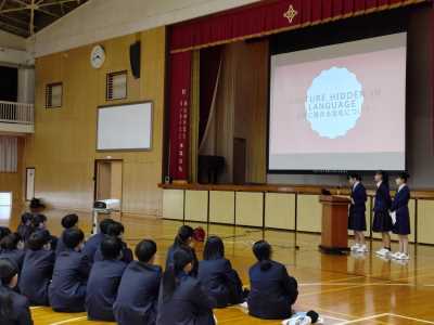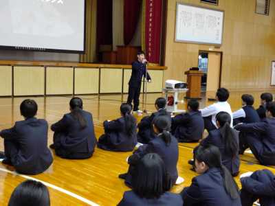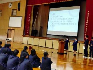 4月13日(月)7校時、文理探究科の1年生から3年生が体育館に集まり、