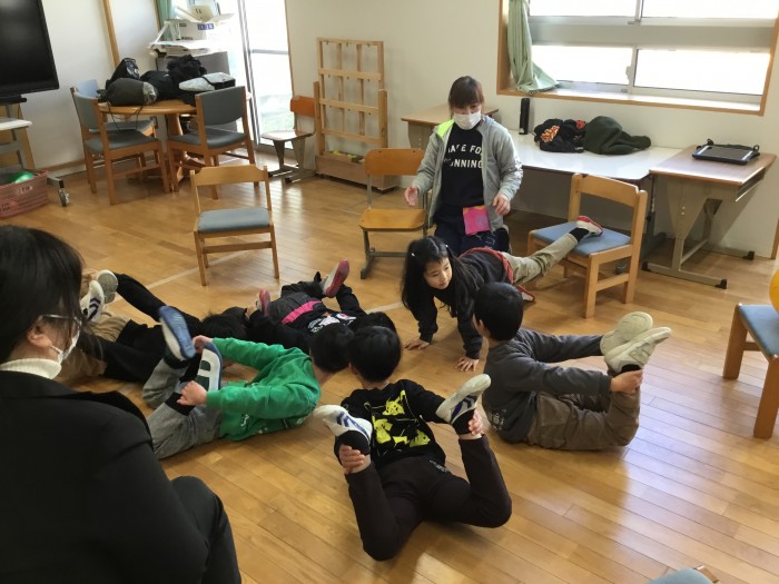 久しぶりに会って始めは少し緊張した様子の子供たちでしたが、じゃんけん列車では、勝ち負けで一喜一憂し、みんなでつながって体を動かし、笑顔がたくさん見られました。