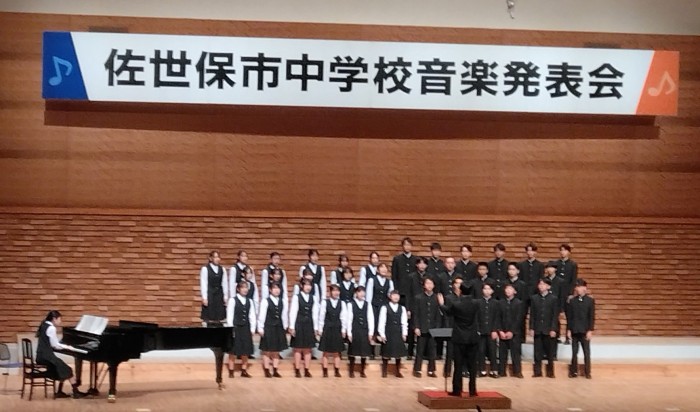 11月11日(火)に佐世保市中学校音楽発表会がアルカスSASEBOにて開催され、中学3年2組が学校代表として参加しました。