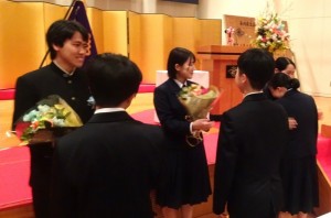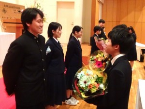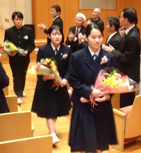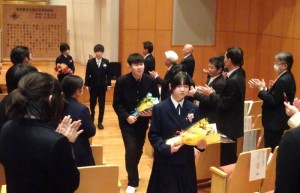 令和8年3月1日(日)17時、厳かな雰囲気のもと「第74回卒業証書授与式」が挙行されました。五島市長様をはじめとするご来賓並びに保護者・ご家族様と多くの皆さまにご出席いただきました。卒業生は4年生2名に加え、定通併修制で卒業単位を取得した3年生5名でした。卒業生全員が呼名を受けて大きな返事をし、しっかりと卒業証書を握りしめていました。送辞・答辞では代表者が涙ぐむ場面もあり、最後は卒業生と在校生が心を一つにして、式歌・校歌を歌い上げるなど、終始、心温まる感動的な式となりました。