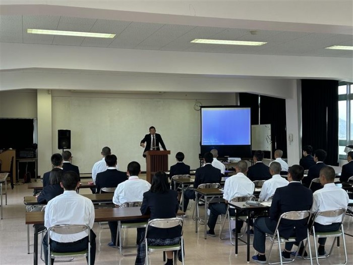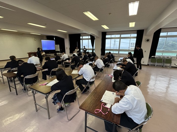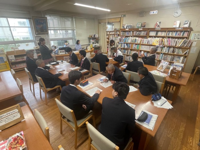 1日目午前中には多くの先生方から講話をしていただきました。校長先生からは高校生活で大事にしてほしい4つのポイントについてお話しいただきました。そのほかの先生方からも中学校との違いや、高校生活や進路などについてのお話もありました。その後はクラスごとに学校を案内と図書館の利用について学びました。