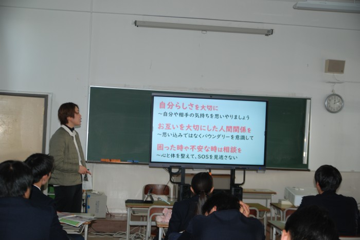 卒業を目前に控えた3年生に向けて、養護教諭から「卒業する皆さんへ―これからの生活をより大切に、より豊かにするために―」というテーマで性(生)教育を行いました。