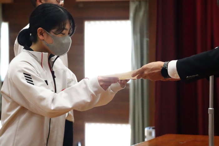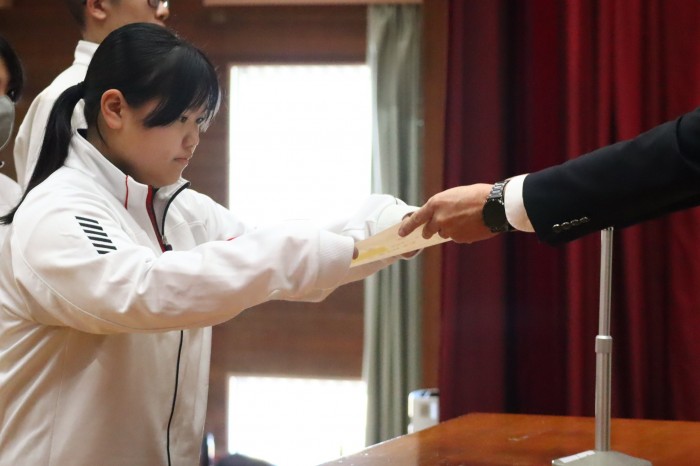 球技大会後に、部活動やコンテストでの結果を讃え、表彰伝達式を実施しました。