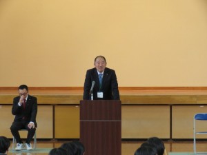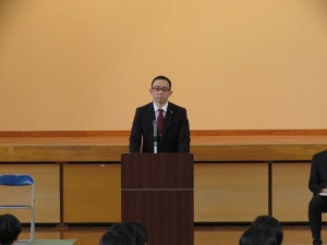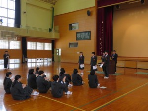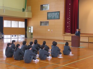 修了式では、水谷校長先生から生徒に向けて、目標達成に冷静な分析が欠かせないことを、スピードスケートの高木美帆選手の話をもとにされました。この休業期間を利用して自己探究に励むよう、思いを述べられました。
