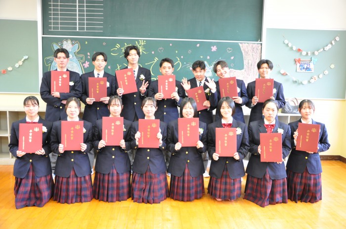3月1日(日)に本校にて卒業証書授与式が執り行われました。今年度は男子9名、女子16名の計25名が本校から巣立っていきました。上対馬高校で学んだことを活かして次のステージでも頑張ってください。卒業おめでとうございます。