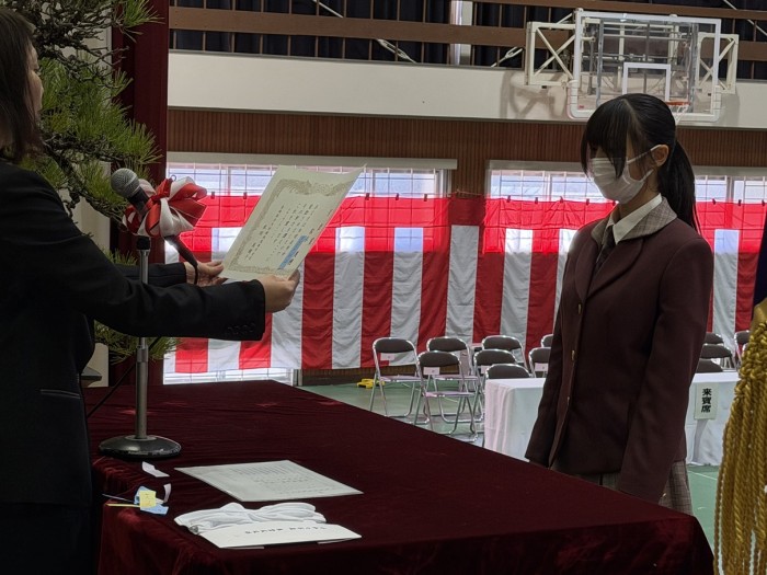 2.全国総合学科卒業生成績優秀者表彰 : 1組 村上栞菜