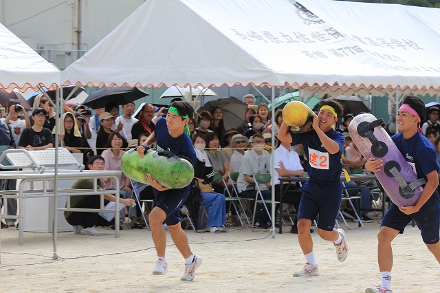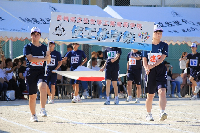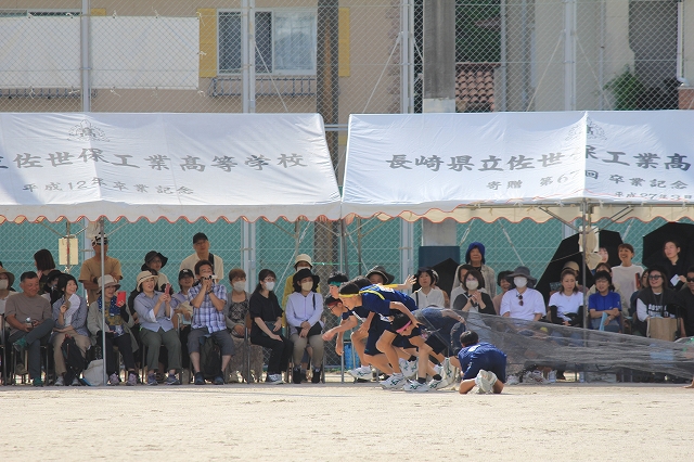 10月4日(土)が生憎の雨により順延となり、10月7日(火)平日開催となった今年の体育祭、観覧される保護者の皆様の数が少なくなるのでは、と心配されましたが、その予想を上回り平日にも関わらずたくさんの保護者の皆様をはじめ、ご観覧いただきました。生徒もやる気満々、各科、全力投入で佐工生らしい元気あるれる体育祭が繰り広げられました。延期されたことで各科の応援も完成度が上がり素晴らしい応援合戦を披露してくれました。各競技の結果は、下記のとおりです。建築科の連覇で幕を閉じた体育祭でしたが、来年は、どんな体育祭になるのか今から楽しみです。