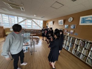 演奏後は施設見学も行わせていただきました。工夫を凝らした製作部屋や図書室、廊下の掲示物に興味津々でした。