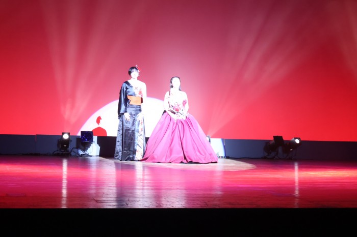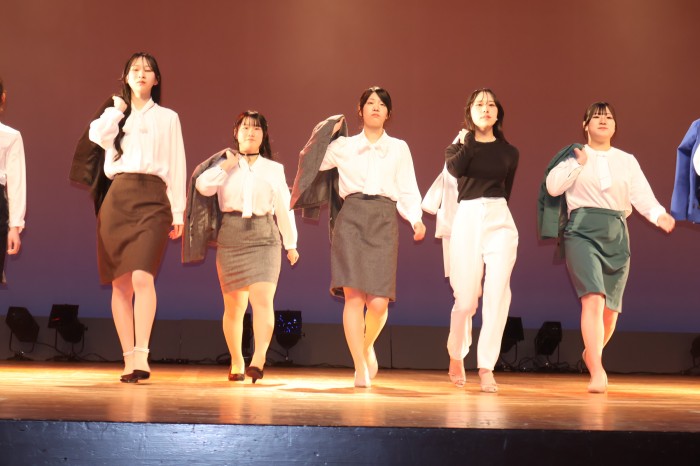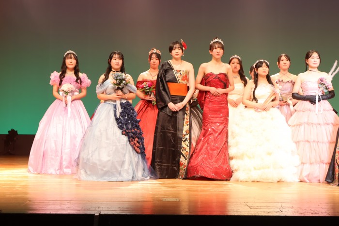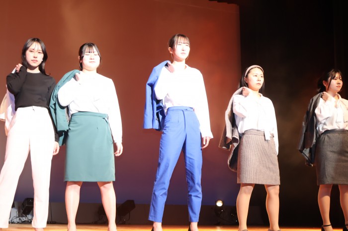 スーツ製作や浴衣製作(動画紹介)、ドレス製作などに取り組んだ成果が披露され、会場は華やかな雰囲気に包まれました。