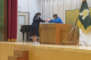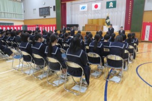 北浦同窓会会長から3年生へお祝いと激励の言葉をいただきました。