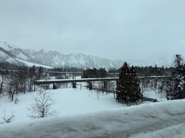 関越トンネルを抜けると…見事な雪景色に圧巻される旅行団。