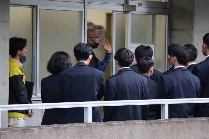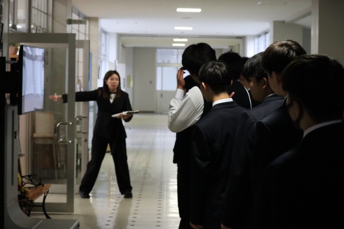 1年生は、オリエンテーションの後クラス別に校舎見学を行いました。