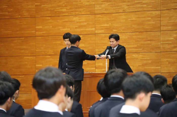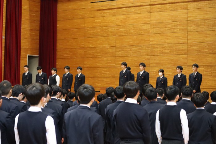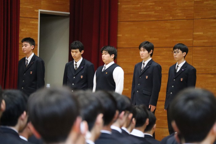 4月10日に本校体育館にて、1学期委員任命式及び新生徒会役員挨拶を実施しました。