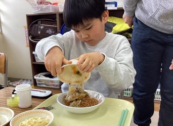 皿うどんは2回目のチャレンジメニューということもあり、工程の見通しをもって上手に仕上げができました。