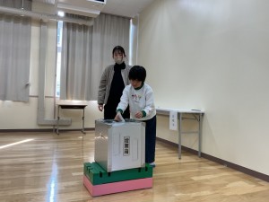 立会演説後、小中学部の児童生徒全員で投票を行いました。