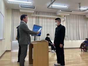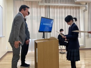 教頭先生から任命状を受け取り、これから児童生徒のリーダーとして、責任をもって活動していく決意を