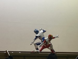 また、午後は毎年恒例のなんでもステージ。有志で、生徒たちや地域の方々も参加していただきました。そして、60周年を迎えるに辺り、上五島のヒーローであるゴットレンジャーが駆けつけてくれ、なかこうに現れた悪を成敗してくれました。