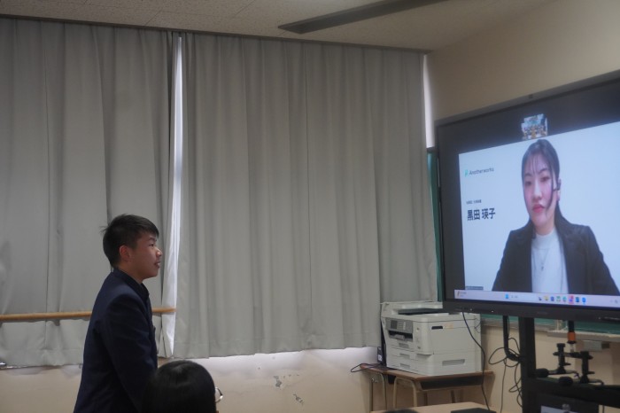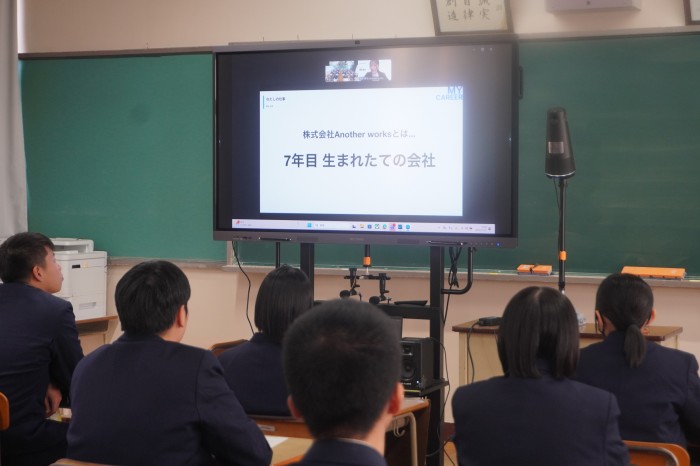 11月27日(木)、2年生で産業エキスパートセミナーを実施しました。講師として株式会社Another worksより黒田瑛子様をオンラインによりご出席いただき、「選べる未来を楽しもう! 働き方の最前線から広げる自分の可能性」というテーマで講話をおこなっていただきました。