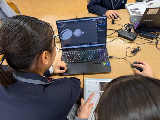 令和7年12月17日(水)、1年生プレまつナビの時間に、松浦市・松浦高校のオリジナルキーホルダーづくりをテーマに探究活動を計画している生徒向けに、3Dプリンタを活用するための3Dモデリングの授業を行いました。松浦高校では、3DCGソフトウェアとして「Blender」を活用しています。初めての取り組みとなるため、基本操作に慣れながら、初級レベルのモデリングに取り組みました。