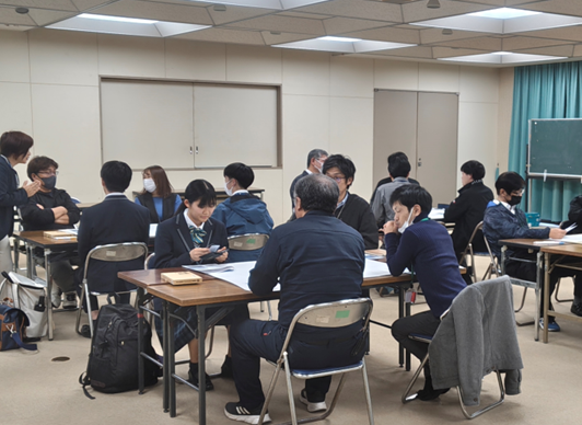このワークショップは、活性化企業人として松浦市役所に勤務されている中村さんを講師として、ドローンを活用した仕事紹介や行政の立場で、民間とどのように連携してドローンを活用していくかなど、市役所各課職員と高校生とで、ブレーンストーミング形式で意見交換していきました。