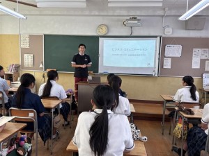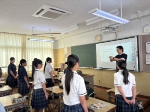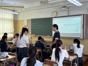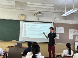 来年度、本校で新設される科目「観光ビジネス」を意識した授業内容として、観光や宿泊業の現状やコンシェルジュの役割、ビジネスマナーやロールプレイング活動、おもてなしアイディアを考えて、1人1人が発表する活動などをおこないました。2時間の講義があっという間で、生徒は講師の方のお話を最後まで集中して聞いていました。講師の方は、長崎県出身で都会に出たあとにUターンをされた方で、生徒との年齢が近い事もあり、観光ビジネスの視点だけでなく、職業観の醸成にも繋がるお話を沢山していただきました。