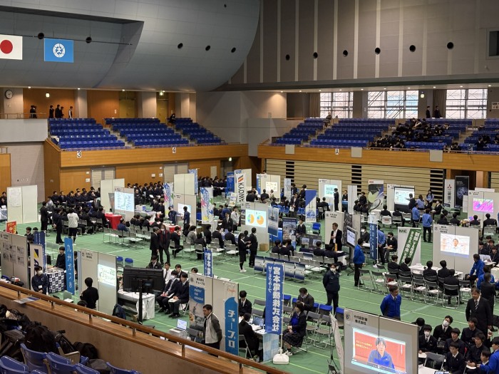 令和7年12月11日(木)長崎県産業労働部未来人材課主催の企業説明会に1年生から3年生が参加しました。会場は「シーハットおおむら」です。参加企業は県内80社で、各企業のブースで説明を聞きました。説明会では、企業の採用担当者の方から仕事の内容や人材育成の取組などお話をうかがうことが出ました。今後の進路選択や進路実現に向けて貴重な経験となりました。