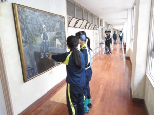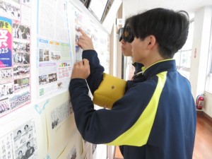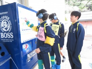 本校はいたるところに素晴らしい油絵作品や生花などがあり、黄色く濁らせ視野を狭くしたゴーグルをかけた生徒たちは新鮮な気持ちで校内を探検したり、実習室でおはじきを色分けしたりして高齢者の気持ちを想像しました。