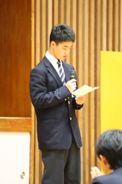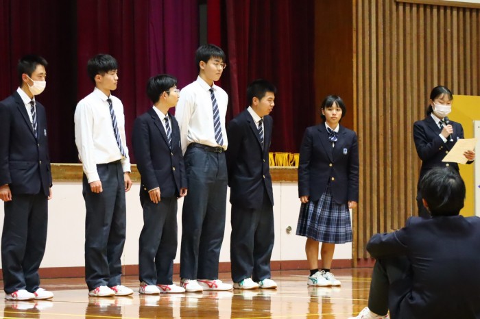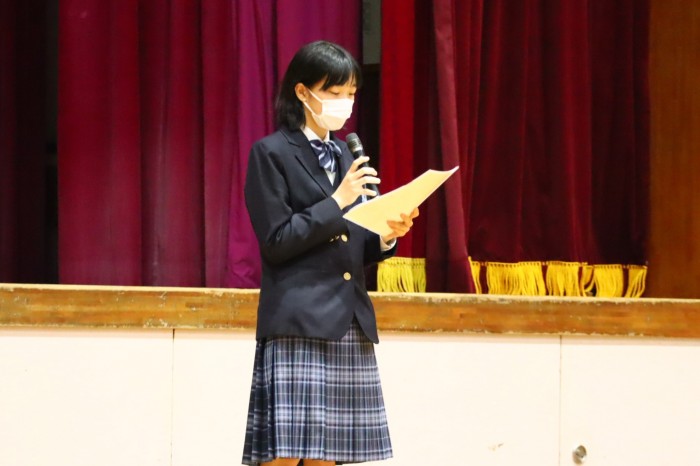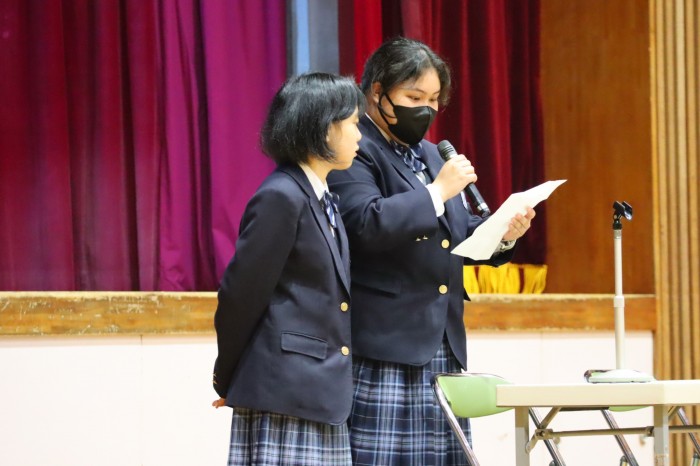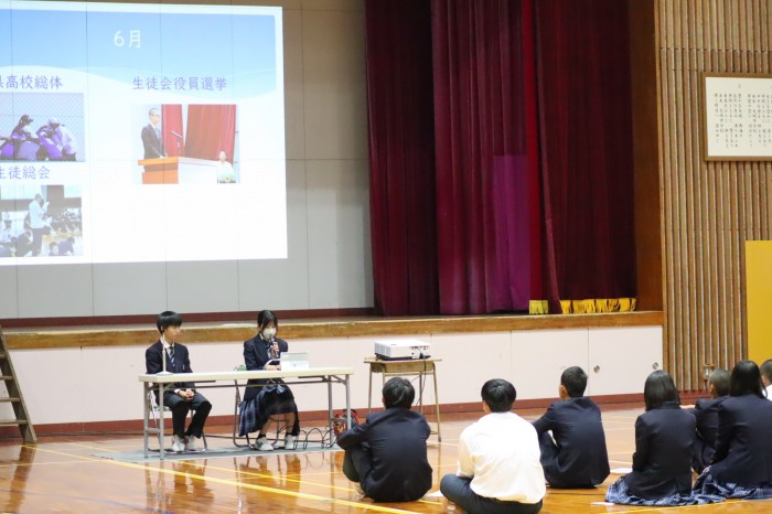 生徒会役員が、生徒会についてや年間行事についての説明を行いました。