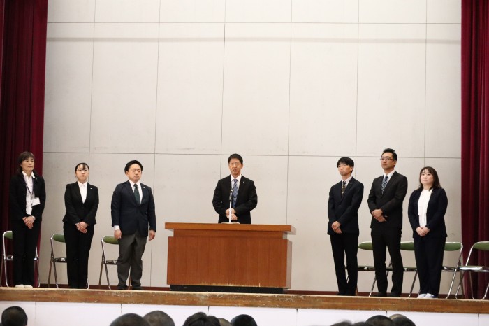 新転任式では8名(1名の先生は本日ご欠席)が新たに大崎高校に赴任されました。