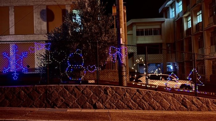 1月末までの期間限定で、校門横フェンスに冬らしいモチーフのイルミネーションを設置しました!