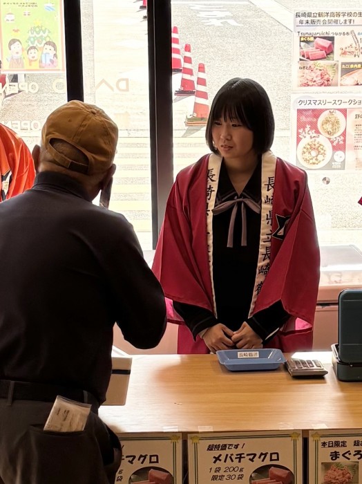 3年情ビ系列生徒が接客を担当しました。今回の目玉商品は、まぐろ柵、