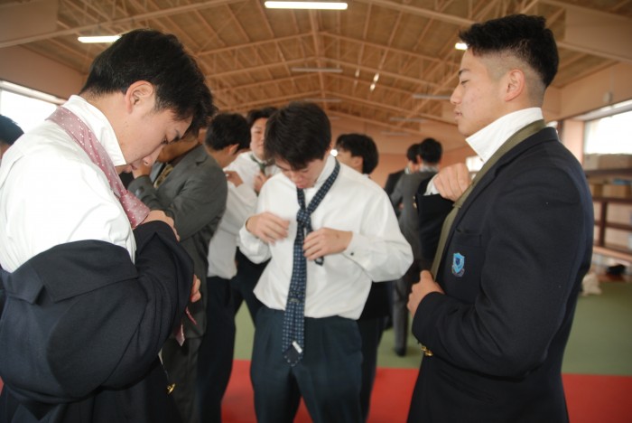 2時間目には、フタタ稲佐山店 店長内野秀隆様をお招きし、スーツ着こなしセミナーを行いました。