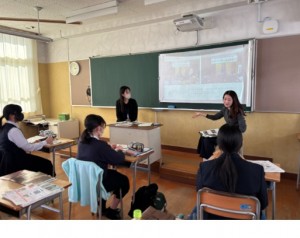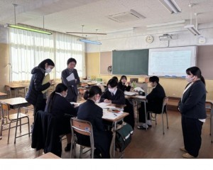 令和8年2月12日(木)6校時に2学年で実施している創造2にて「外部とつながる」活動を実施しました。「“地域”の誰かの役に立つ」「“地域”の誰かを元気にする」を最終的な目的として研究を進めていくために、この日は、各分野の専門性を持った外部の方に来校していただき、地域の課題やマーケティング、地域の文化振興や昔遊び、美容などについて詳しくお話をしていただきました。