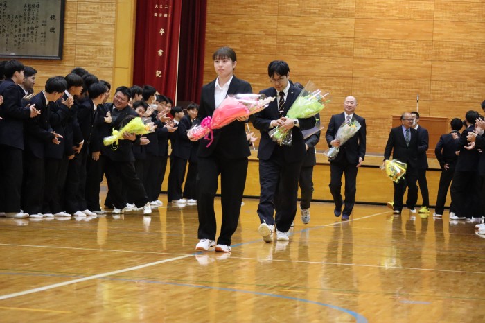 式典では、離任される先生方お一人ひとりから、本校での思い出や在校生への温かい励ましのメッセージをいただきました。