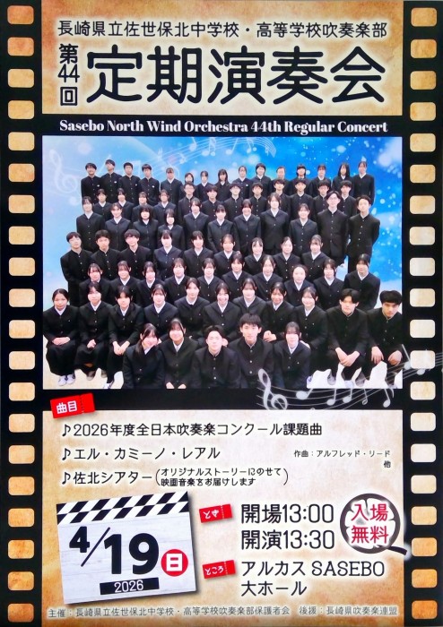 本校吹奏楽部が、第44回定期演奏会を下記のように開催いたします。