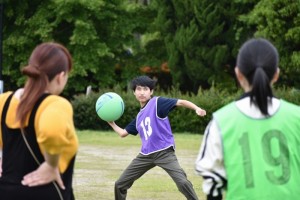 レクレーションのドッジボールは、力が均等になるように全体を4チームに分け、トーナメント方式で実施されました。先輩や後輩への遠慮もあったのか、生徒たちは激しいボールの投げ合いというよりも、和気あいあいと競技を行っていました。