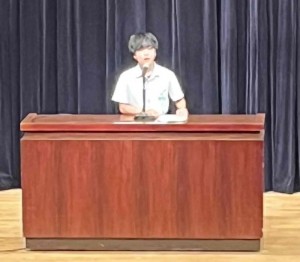本校からは2年生の 平山詠菜 さんが出場しました。『ありのままに生きる』という題目で発表し、ステージ上で堂々と自分の思いを伝える姿は大変頼もしく、平山さんの一言一句が観客の心に響き、会場全体がその世界に没入しているような雰囲気が印象的でした。