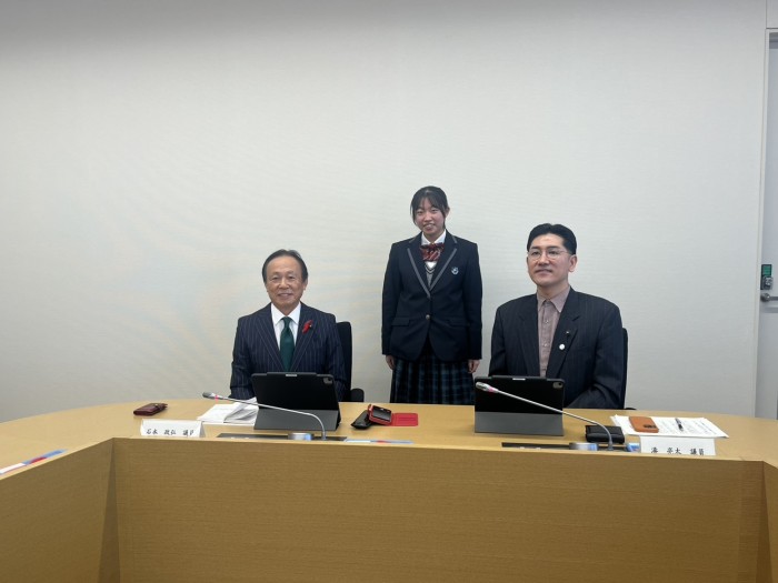 令和7年12月18日(木)に長崎県庁議会棟議場で行われた、県内高校生と県議会議員との交流事業に本校2年生の久保川愛子さんが参加をしました。