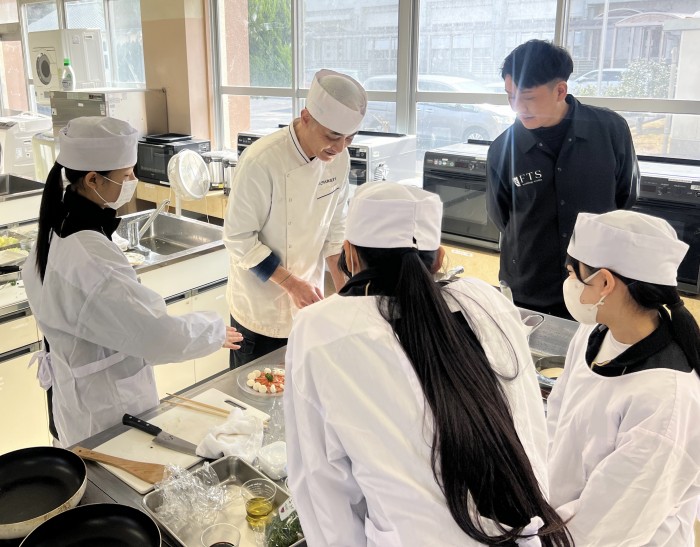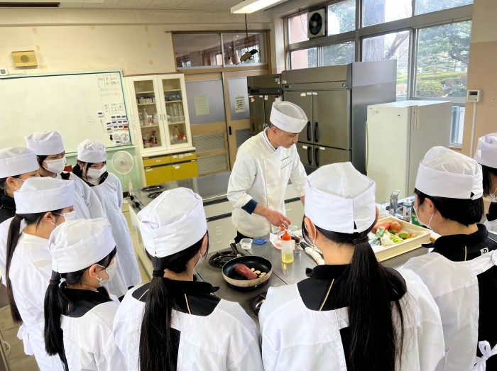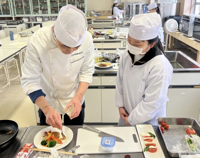 生徒たちも熱心に盛りつけの仕方や肉の焼き方などを聞いていました!