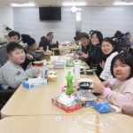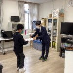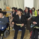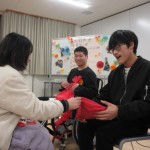 お別れ会。高等部卒業生(5名)をお祝いしました。卒業生の寄宿舎生活のフォトムービーを見ました。