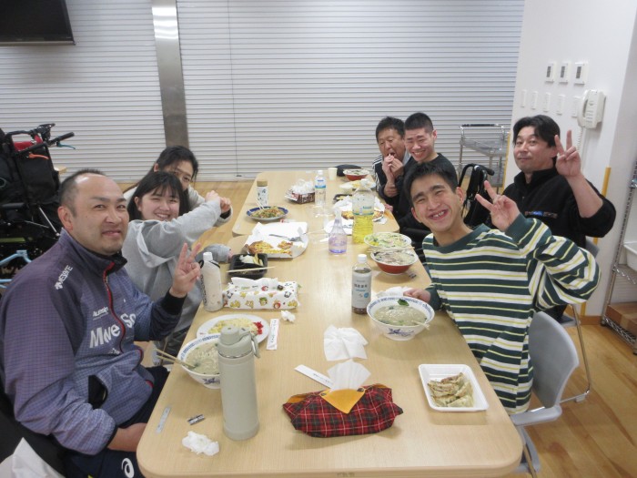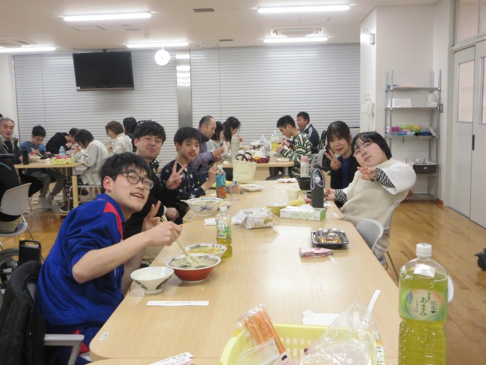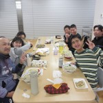 食事会。それぞれが好きなメニューを選び外注しました。