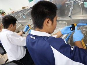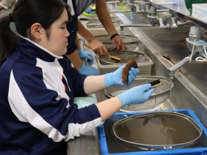 ▲実際に土器を手に持ち洗浄していきます。